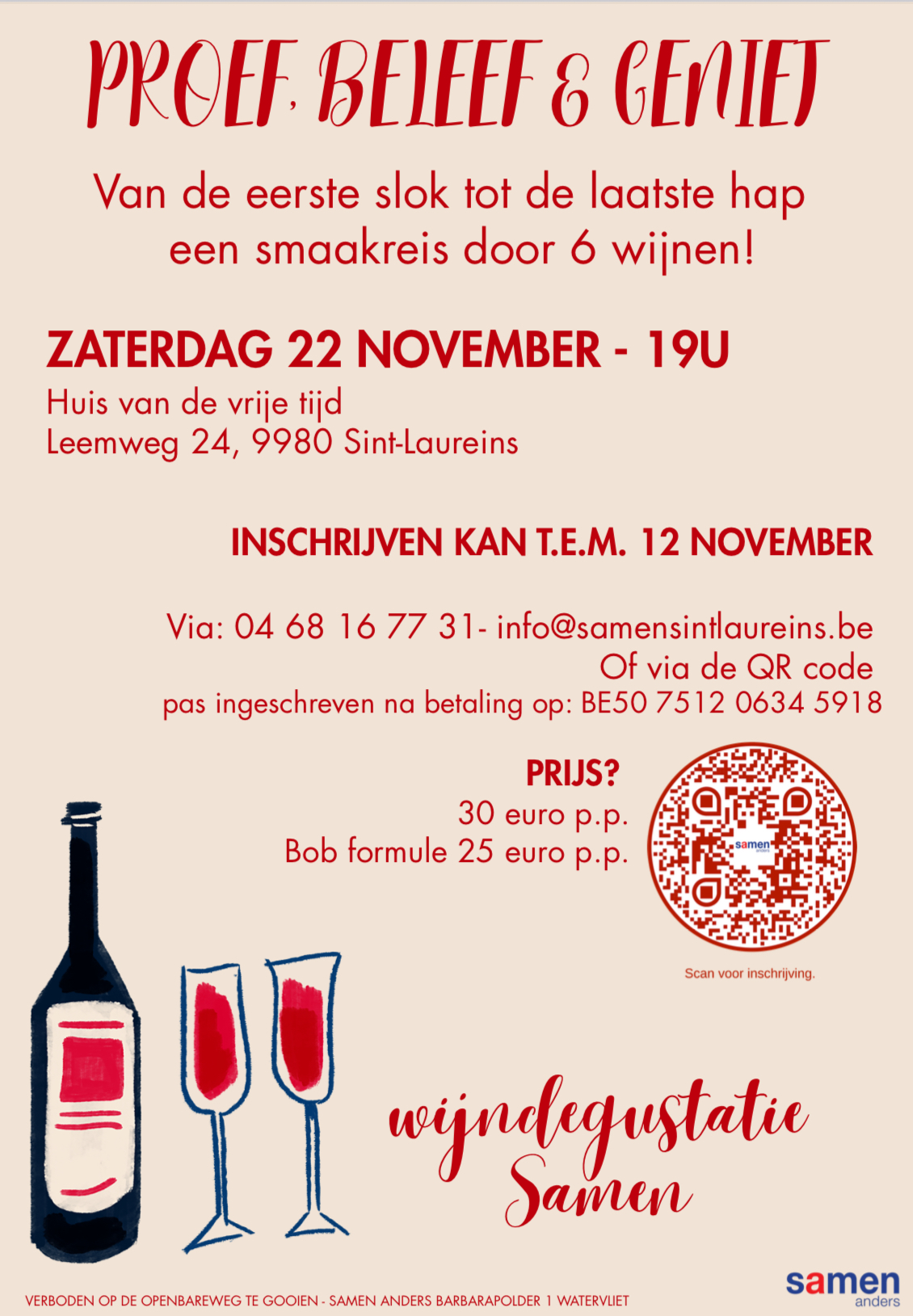 Op zaterdag 22 november organiseren we een wijndegustatie!
